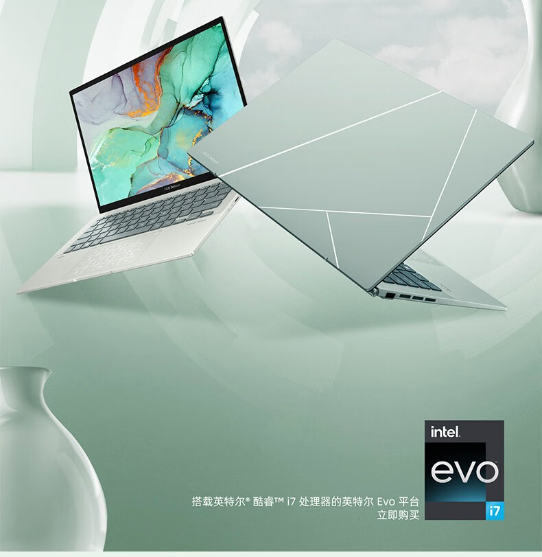 商品名称:华硕灵耀14 2022 12代酷睿 2.8K OLED屏 高颜值超轻薄笔记本电脑 i7-1260P 16G 512G 影青釉