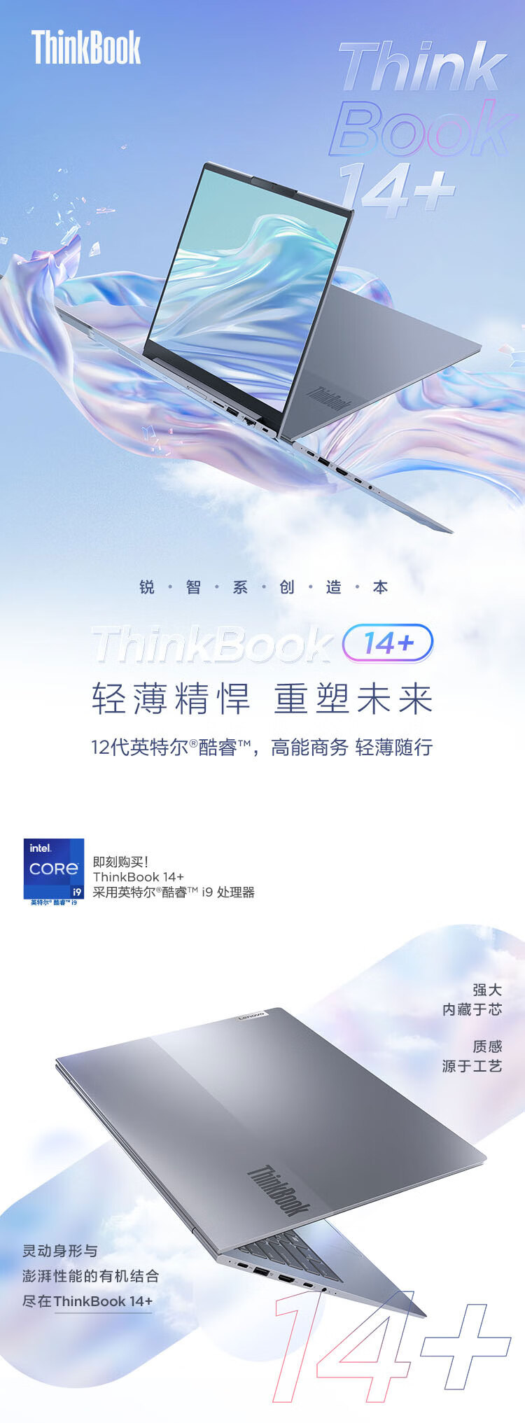 商品名称:联想ThinkBook 14+ 英特尔酷睿i5 笔记本电脑全新2022款 14英寸标压轻薄本i5-12500H 16G 512G 2.8K 90Hz